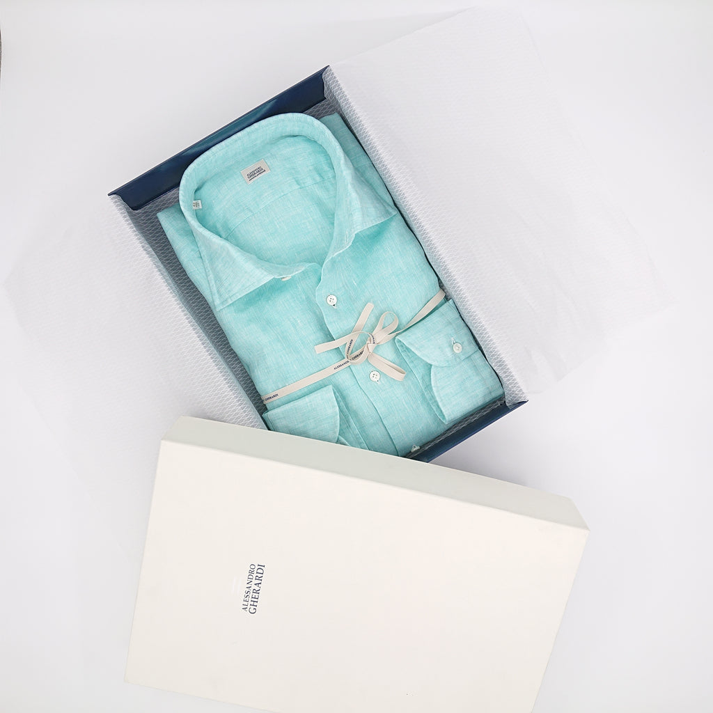 Votre chemise Gherardi est construite pour que vous vous y sentiez à l'aise tout au long de la journée. La marque utilise les plus belles matières (tissus Albini, Thomas Mason, Carlo Riva,...) et met un point d'honneur à confectionner les chemises en suivant un processus artisanal. Dans cette gamme "Bleu", 8 opérations ont été réalisées à la main à Pieve Santo Stefano dans la province d’Arezzo.