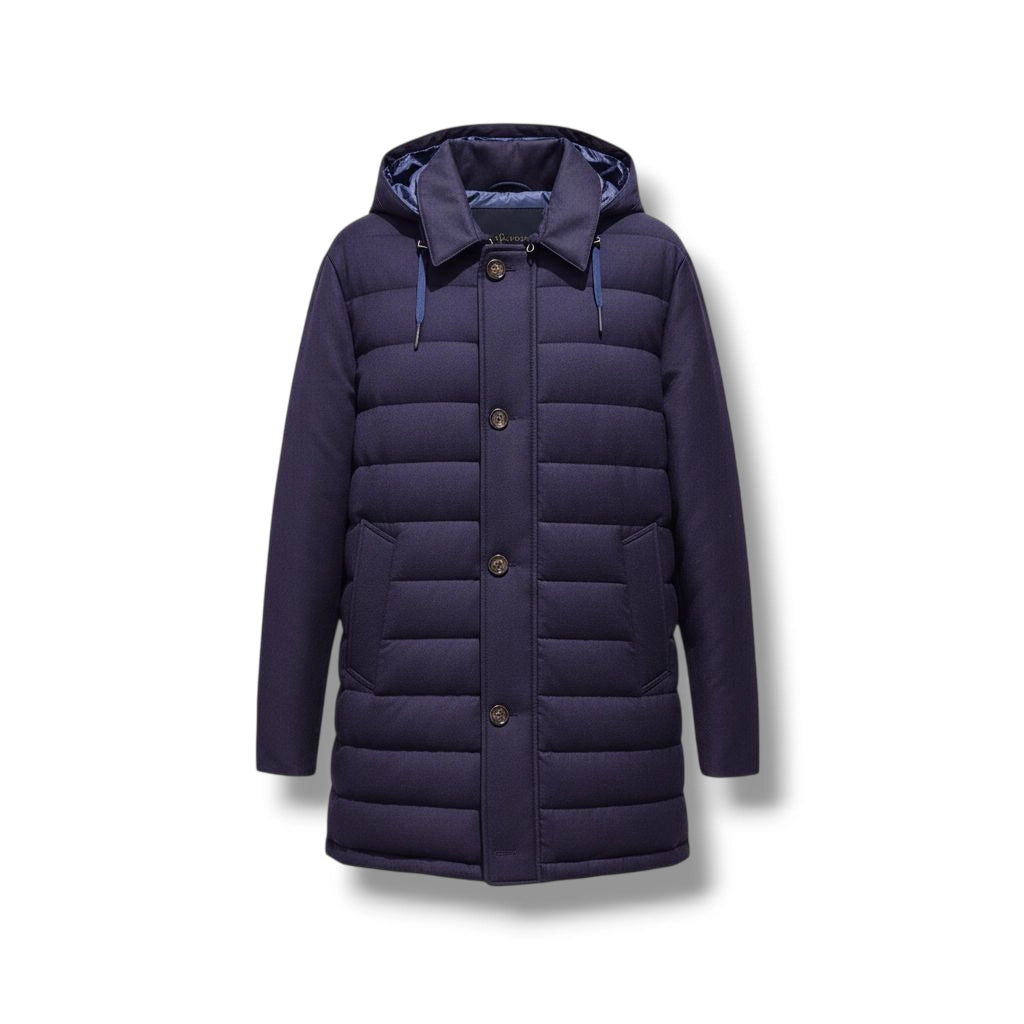 Veste doublée en plumes d'oies et tissu japonais impermable. Ultra-légère, cette veste sera un parfait allié pour faire face aux intempéries et aux frimats de l'hiver. Comme les plus belles pièces italiennes, elle vous apportera un look sportif et élégant. Un incontournable!