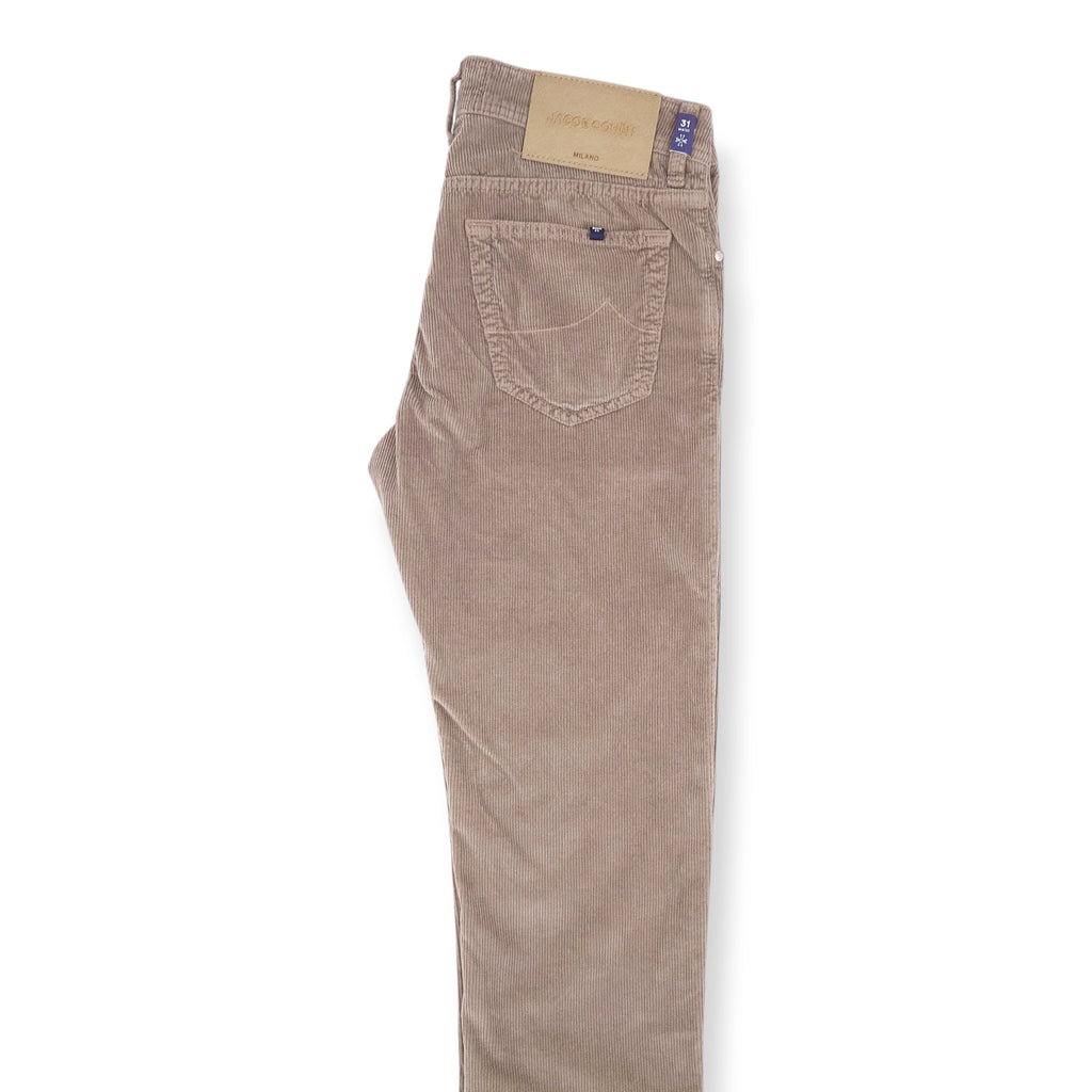 Fabriqués à la main à Veneto, chaque paire de Jeans a des qualités « sartoriales », ce qui se voit au premier regard. Les boutons et les rivets sont en argents, en cuivre ou en acier; l'étiquette arrière est en cuir ou en poulain. Les pantalons Jacob Cohën sont fabriqués dans des matières intelligentes qui s'adaptent au corps pour conserver un maximum de confort.
