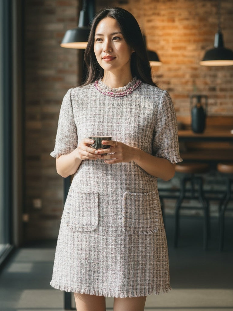 Robe habillée en Tweed pour une allure à la fois élégante et décontractée.